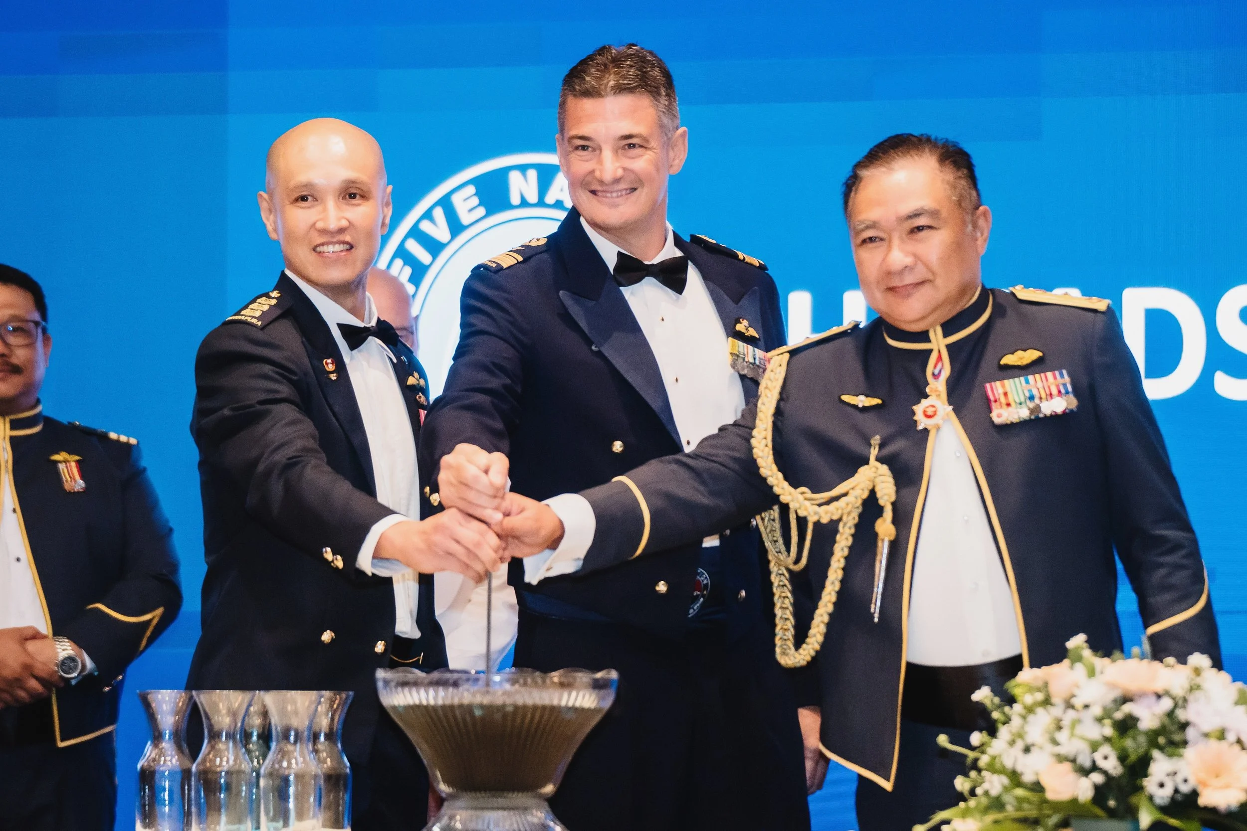 “Military dining-in is a formal ceremony traditionally held by military units to foster camaraderie and esprit de corps. While the practice is thought to have formally begun in the 16th century, historical records suggest that militaries have held formal dinners as far back as the Roman Legions. Headquarters Integrated Area Defence System (HQIADS) upheld this enduring tradition on 7 August 2025. The event was graced by a total of 63 personnel comprising HQIADS staff accompanied by their spouses, who were invited in recognition of their invaluable support to HQIADS members – support that is essential to the continued success of both FPDA and HQIADS. The dining-in served to reinforce military customs, discipline, and unity, while also providing a meaningful opportunity for cultural exchange among the diverse HQIADS community.”